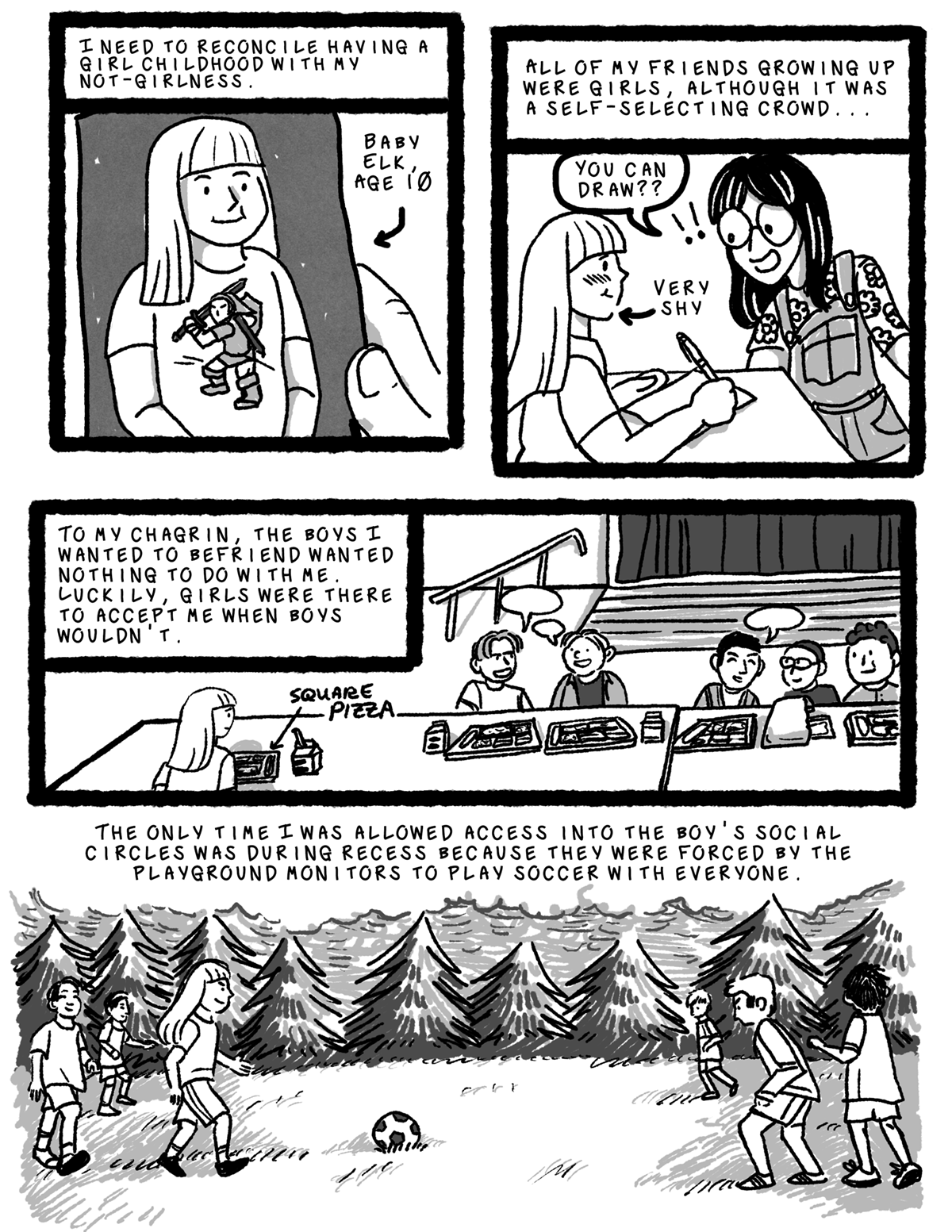 The first edition of this minicomic was produced for the Chicago Alternative Comics Expo, CAKE, in 2024. The second printing was made for ICAF, the International Comics Art Forum in 2025 in San Diego, to go with an academic paper on Transmasculine Girlhood I wrote for an upcoming book collection called 'Norm-critical Perspectives in Comics’, edited by Robert Aman and Lars Wallner of Linköping University.